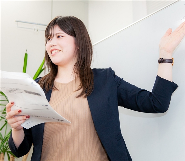 最初は職務限定正社員で入社し、トラブルでお困りのお客様からのお問い合わせに対応するアシスタンスコーディネーターとしてキャリアをスタートしました。1年後に正社員登用試験を受けて正社員にステップアップ。その後は現場で新入社員をサポートするOJTトレーナーの業務等を経て、3年目からは、今も在籍している「業務研修課」に異動し、新入社員が現場に出る前の研修を担っています。ここまで順調にキャリアアップできたのも、意欲がある人にはどんどん挑戦させてくれる当社の社風があるからです。今は主任としてメイントレーナーやサブトレーナーを担当しています。